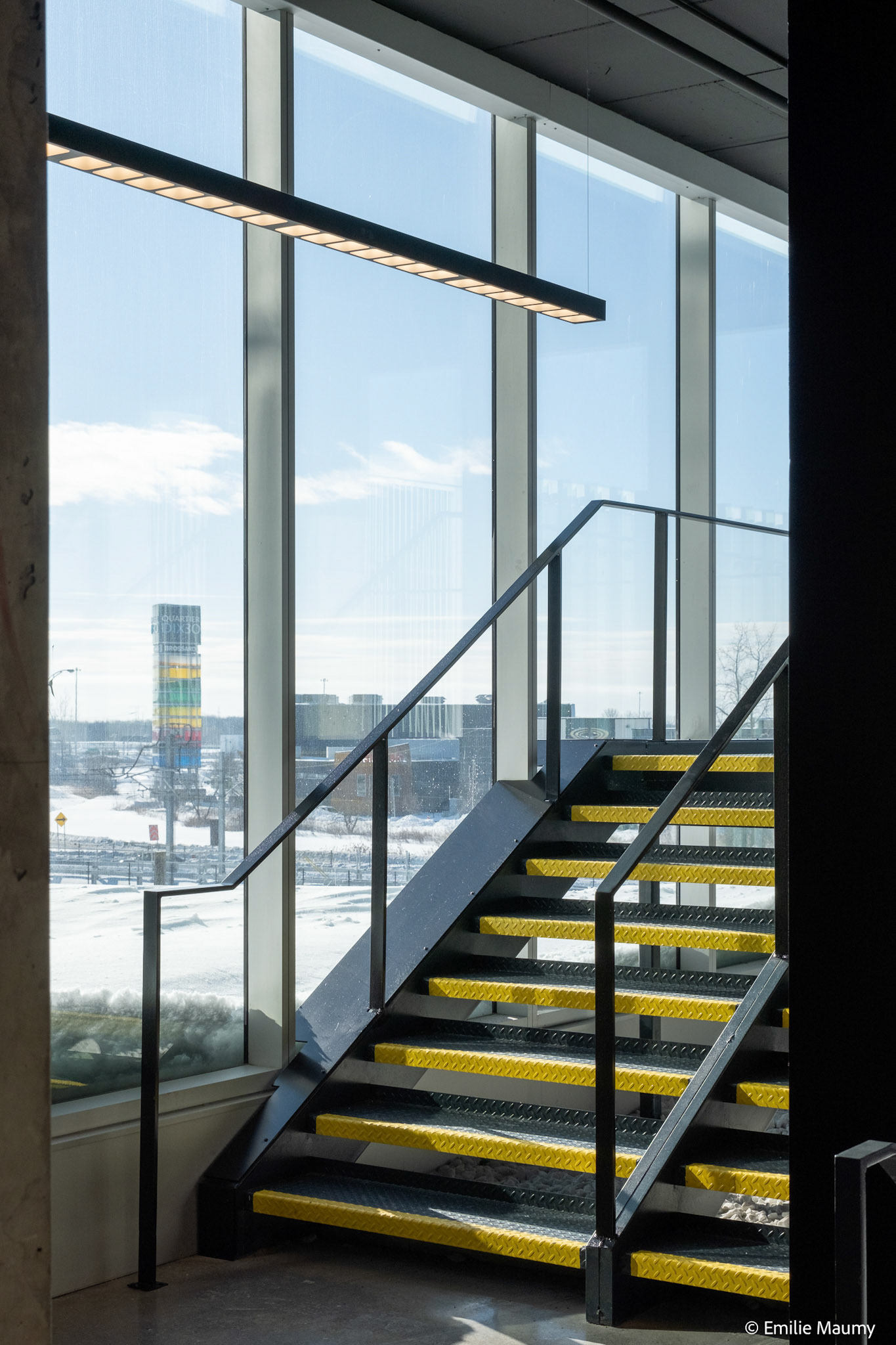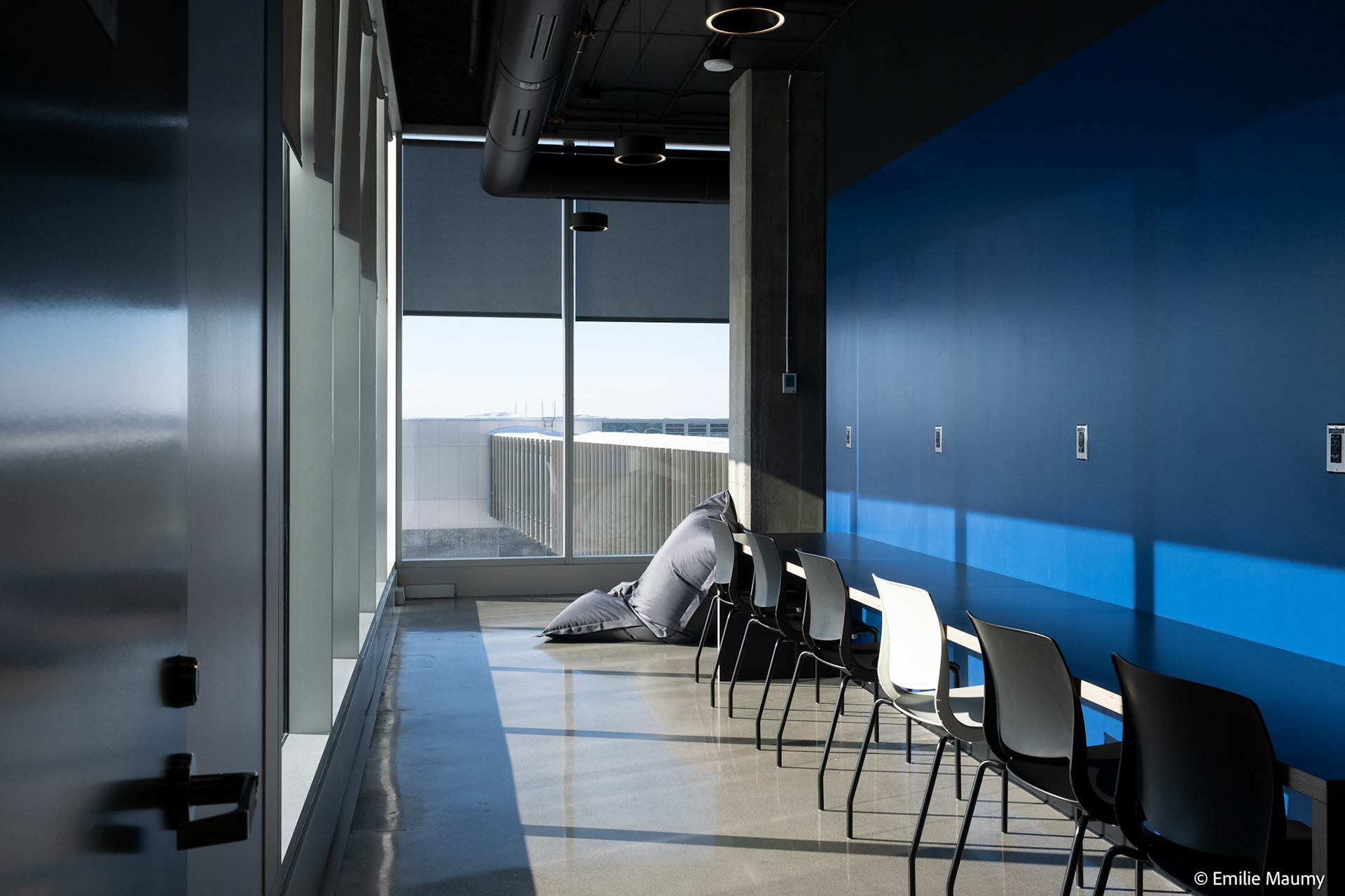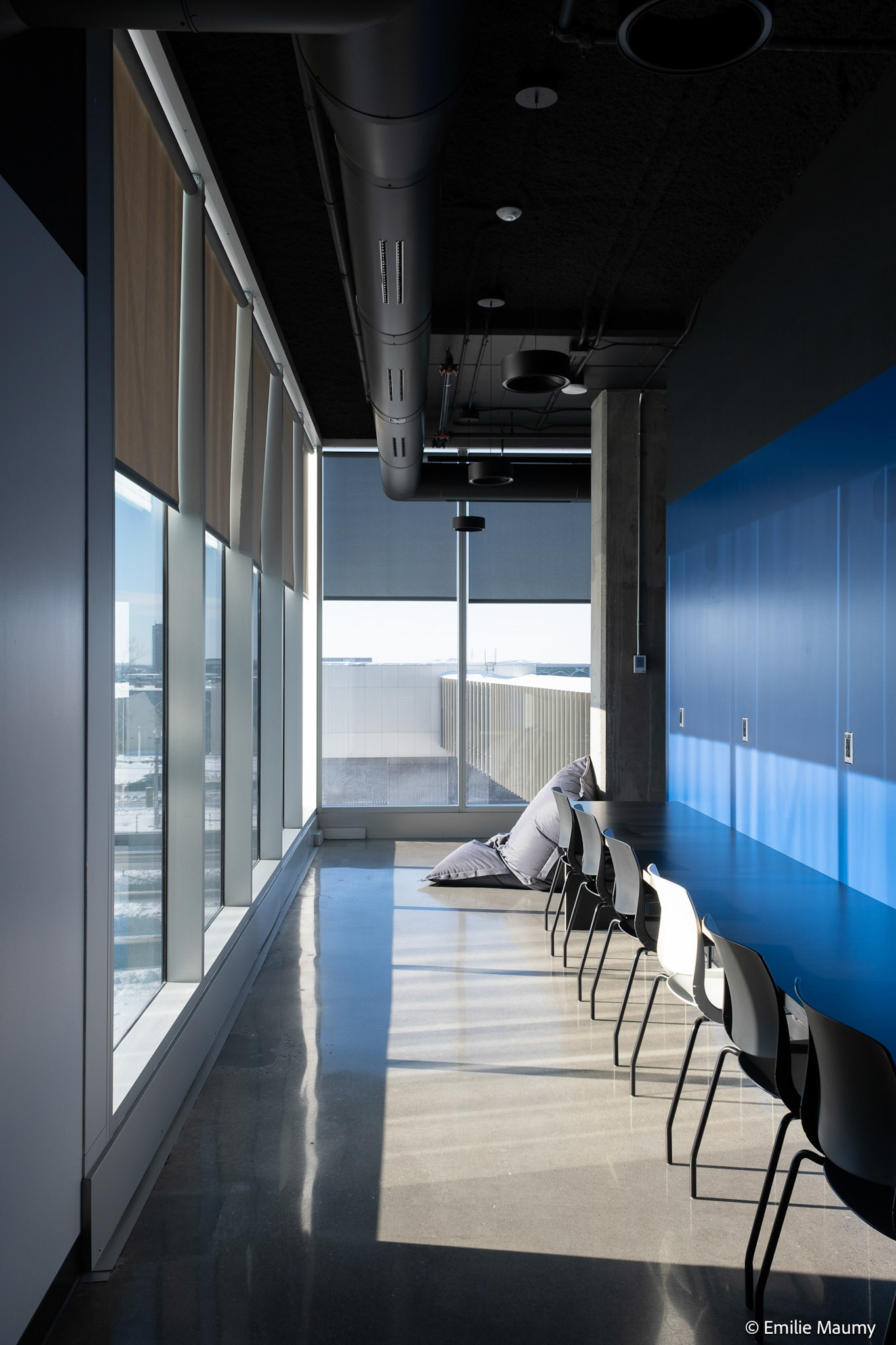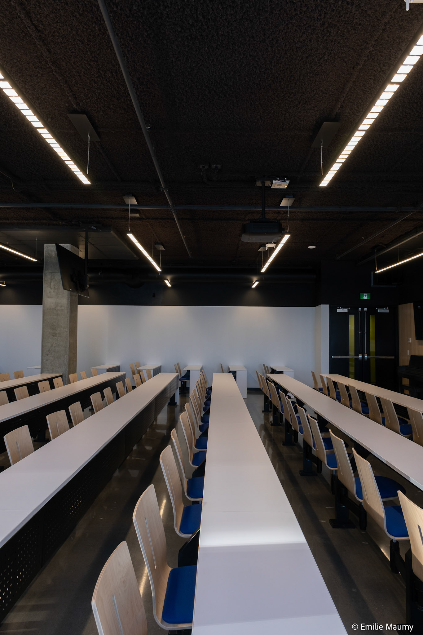 Projet d'aménagement intérieur du nouveau campus de l'université de Montréal à Brossard, conçu par le bureau d'architectes Lapointe Magne & Associés, Février 2023.