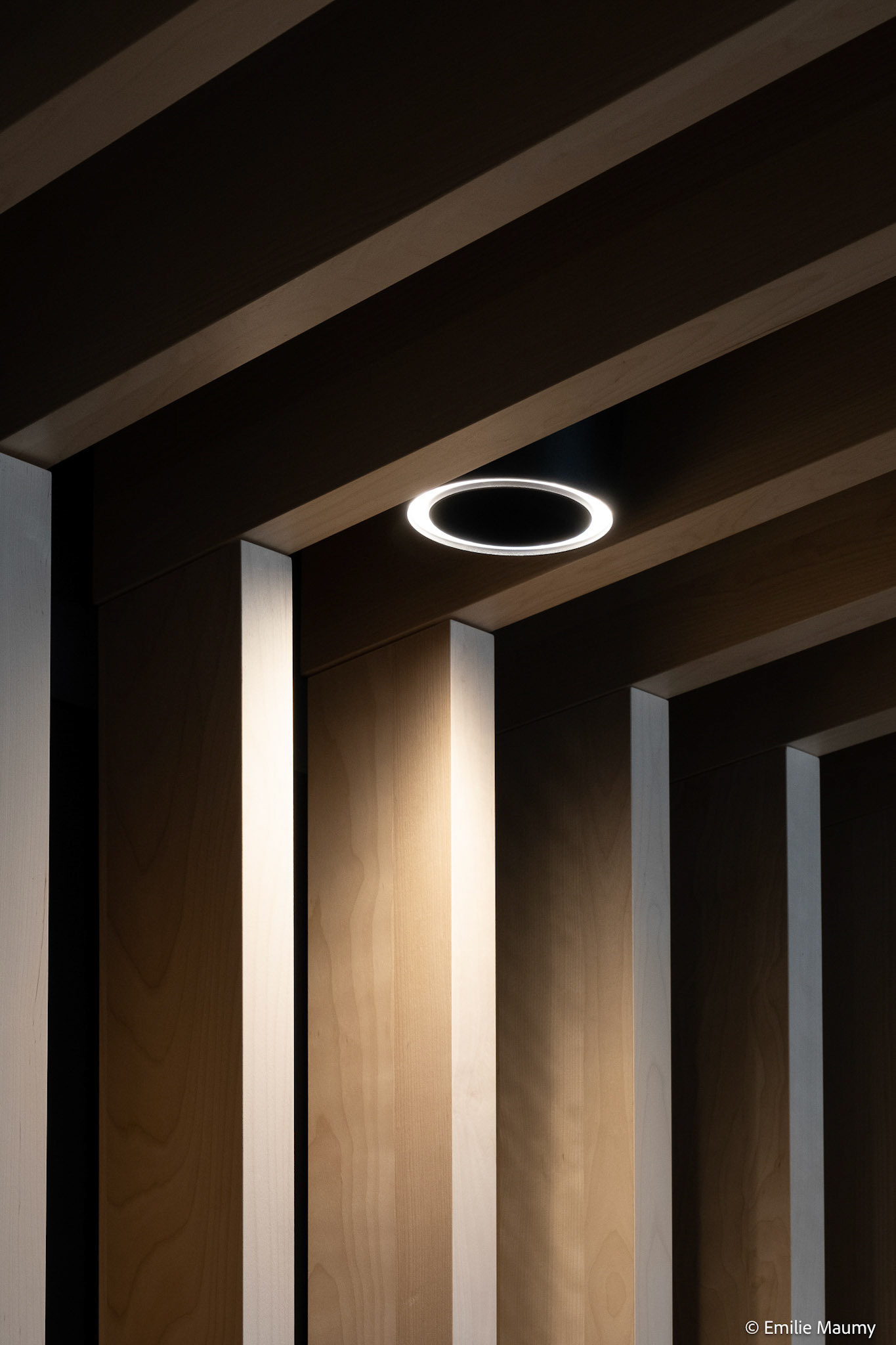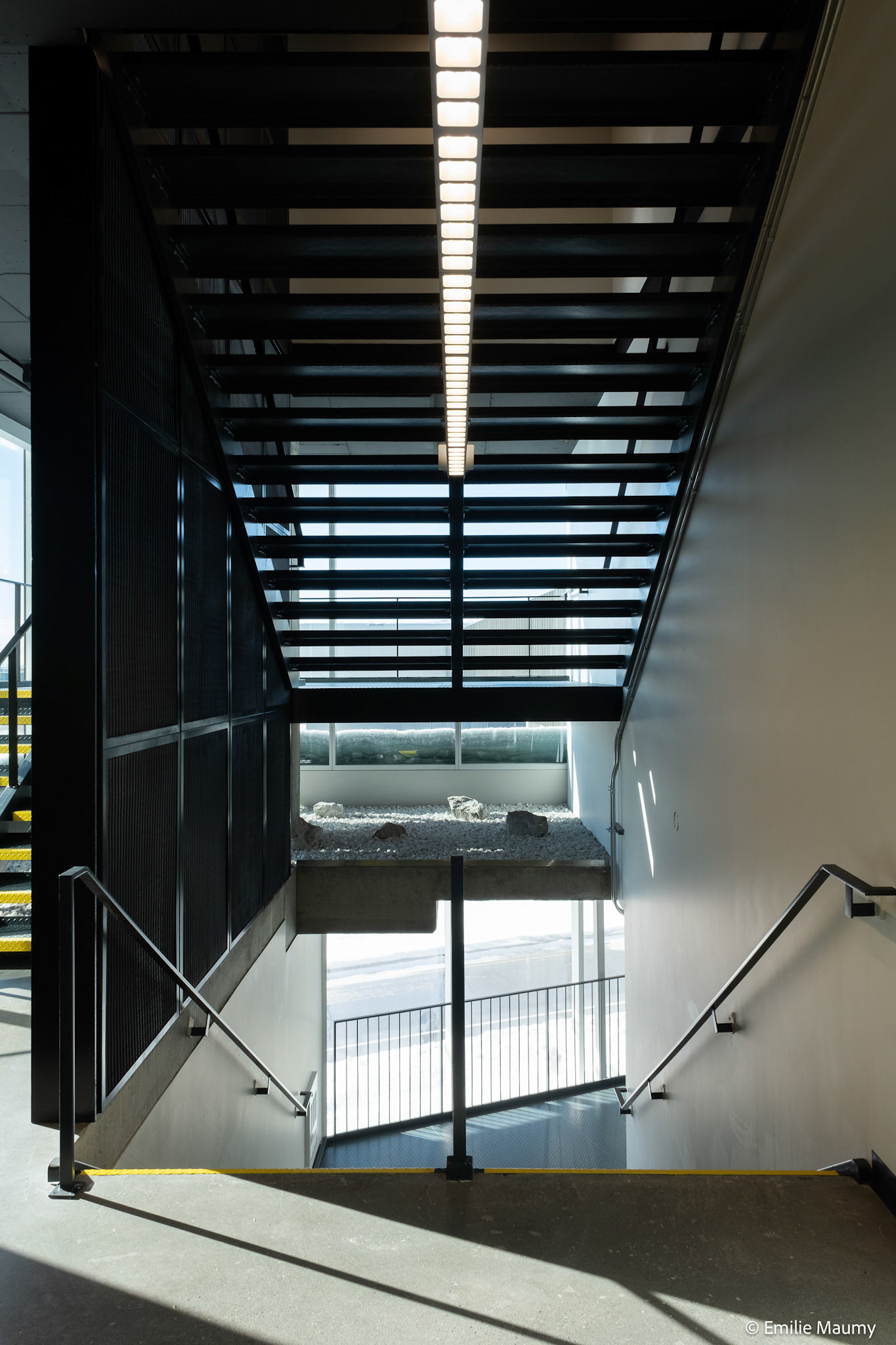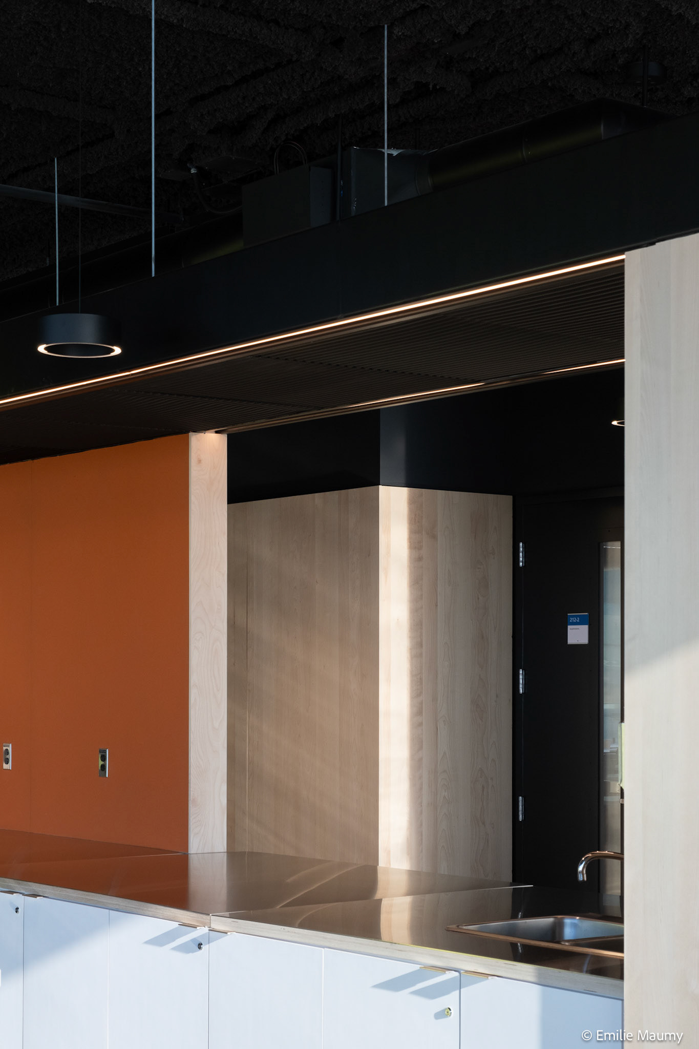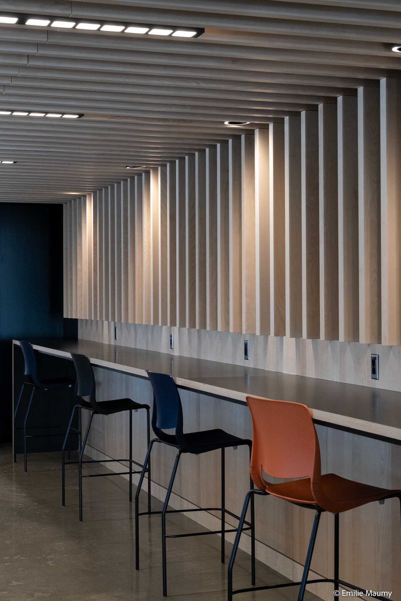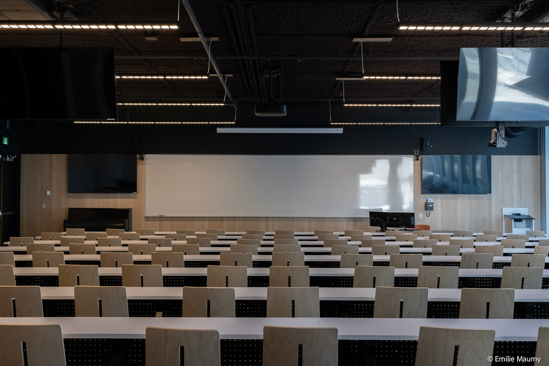 Projet d'aménagement intérieur du nouveau campus de l'université de Montréal à Brossard, conçu par le bureau d'architectes Lapointe Magne & Associés, Février 2023.
